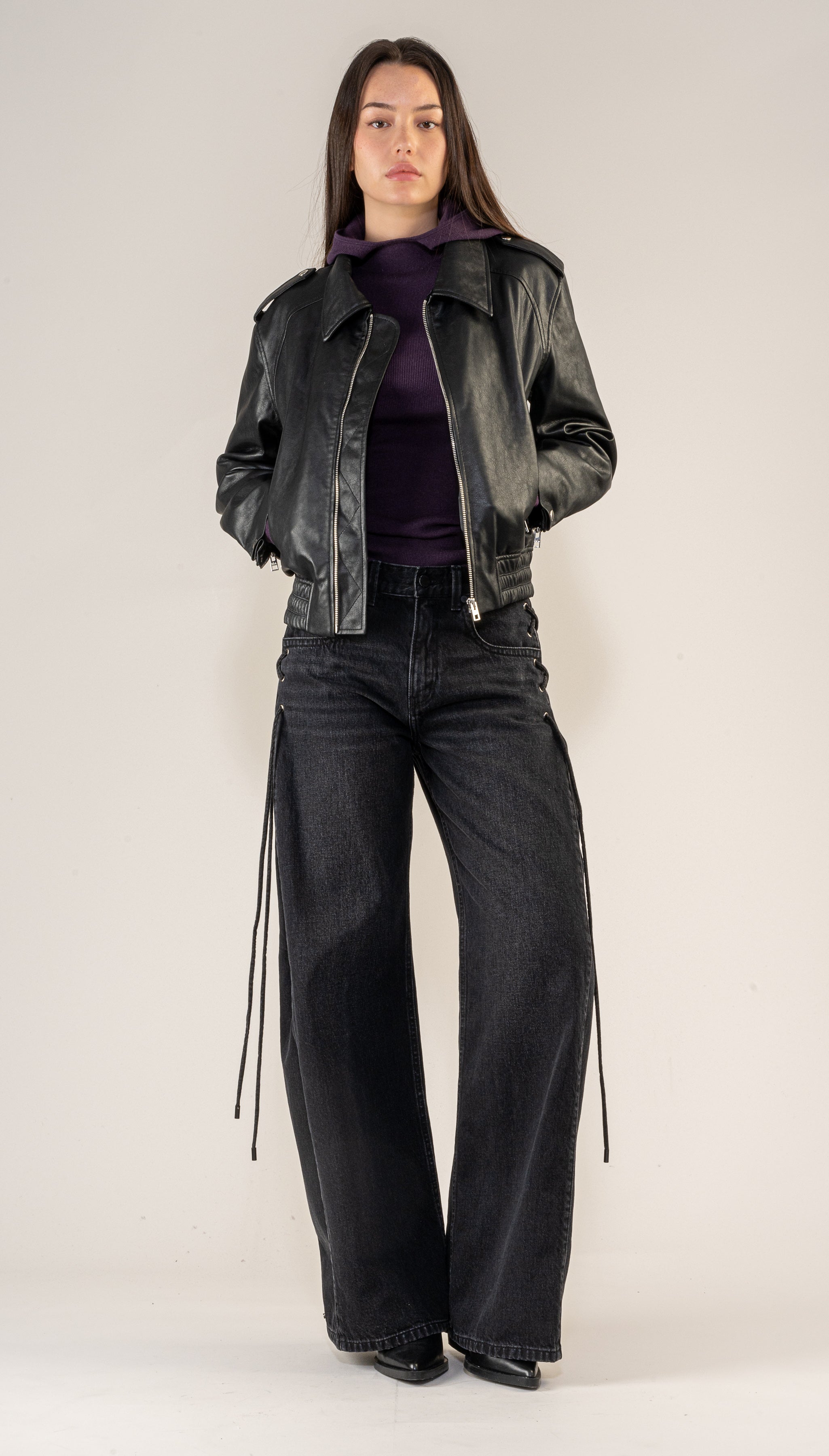 "Claire" Dropped Shoulder Vegan Leather Short Length Bomber Jacket