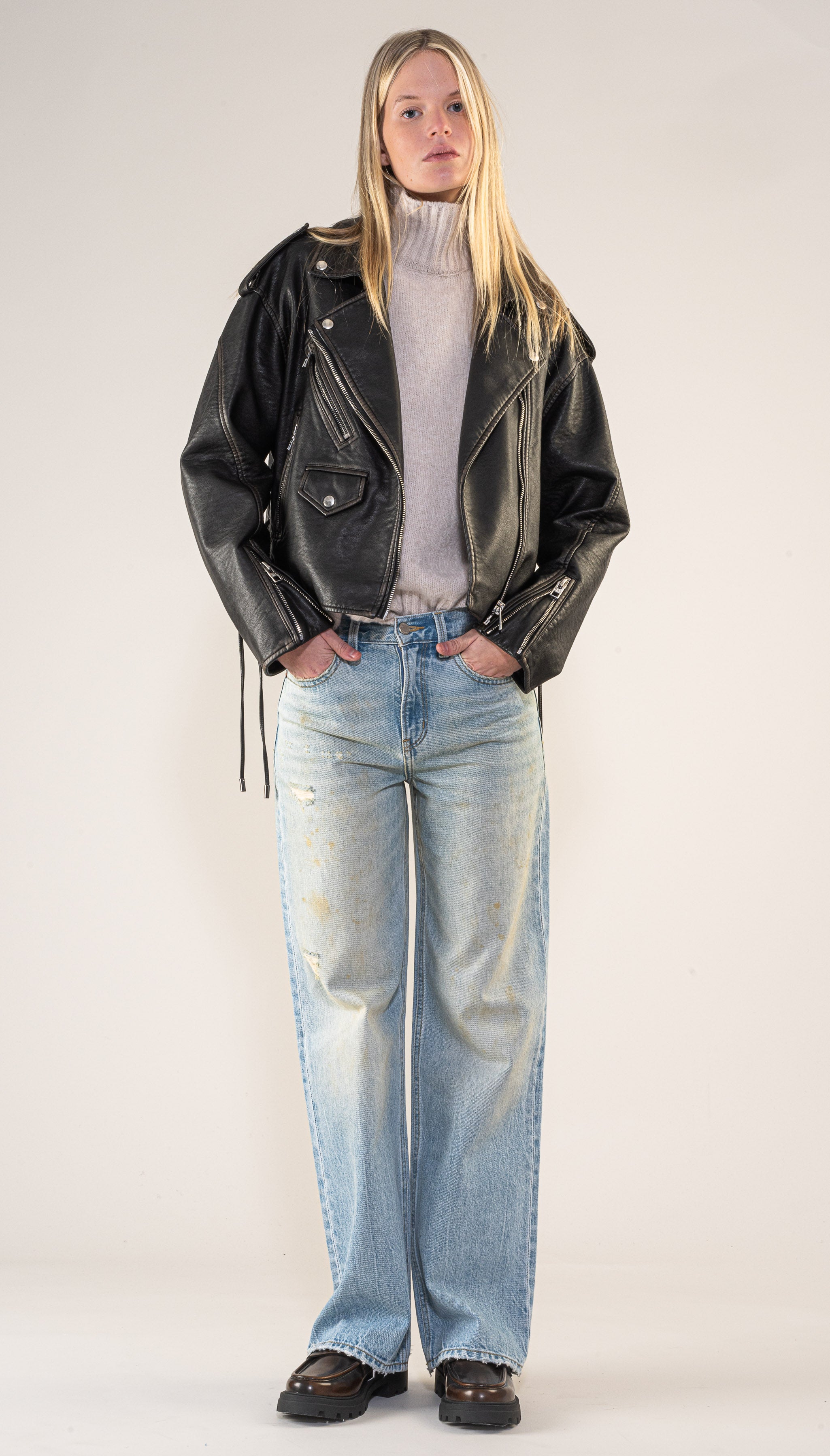 "Jesse" Side Lace Motorcycle Jacket Crafted in Vegan Leather