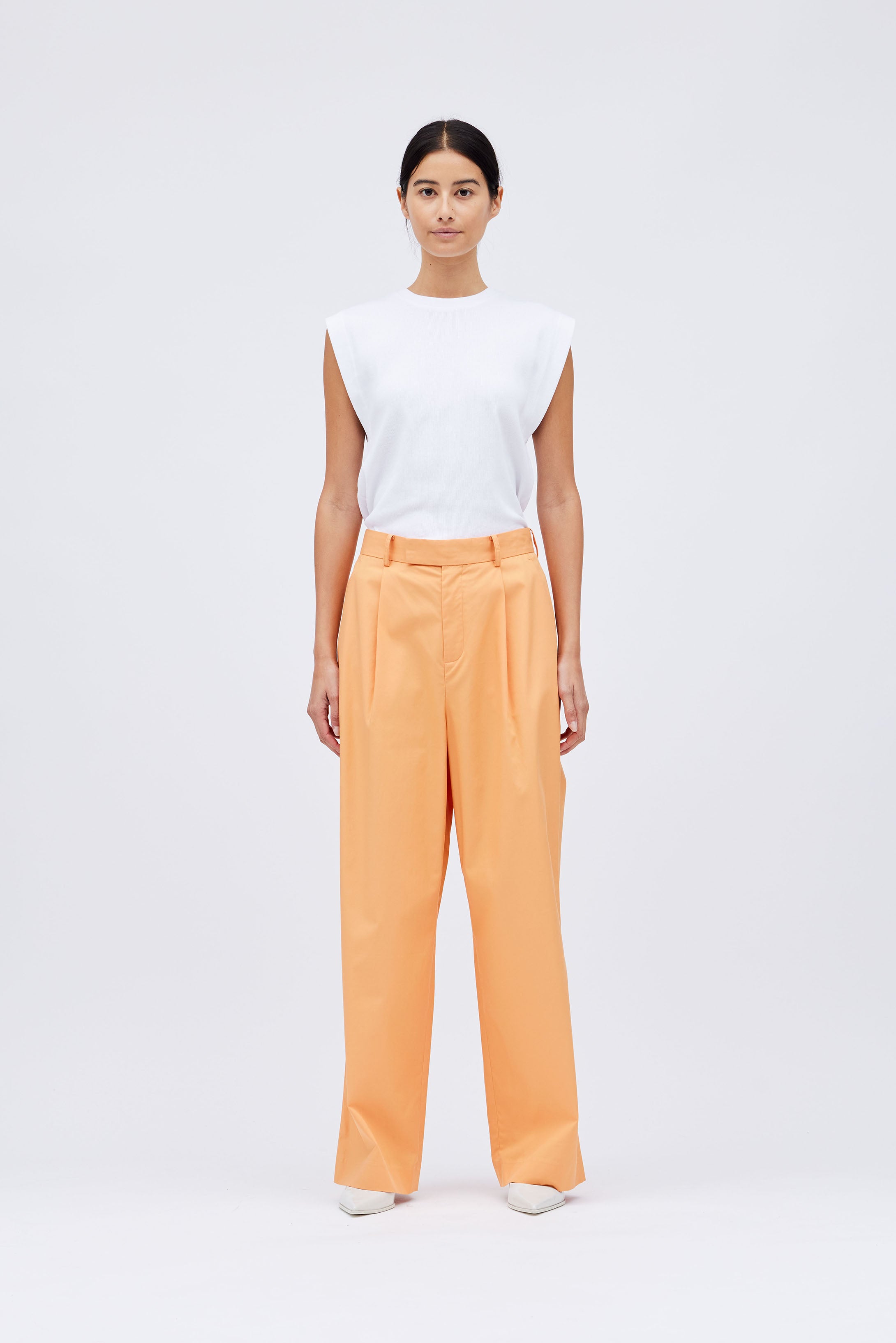 "Marianne" Mid-Rise Wide Leg Pleated Trouser in Soft Modal-Cotton Blend