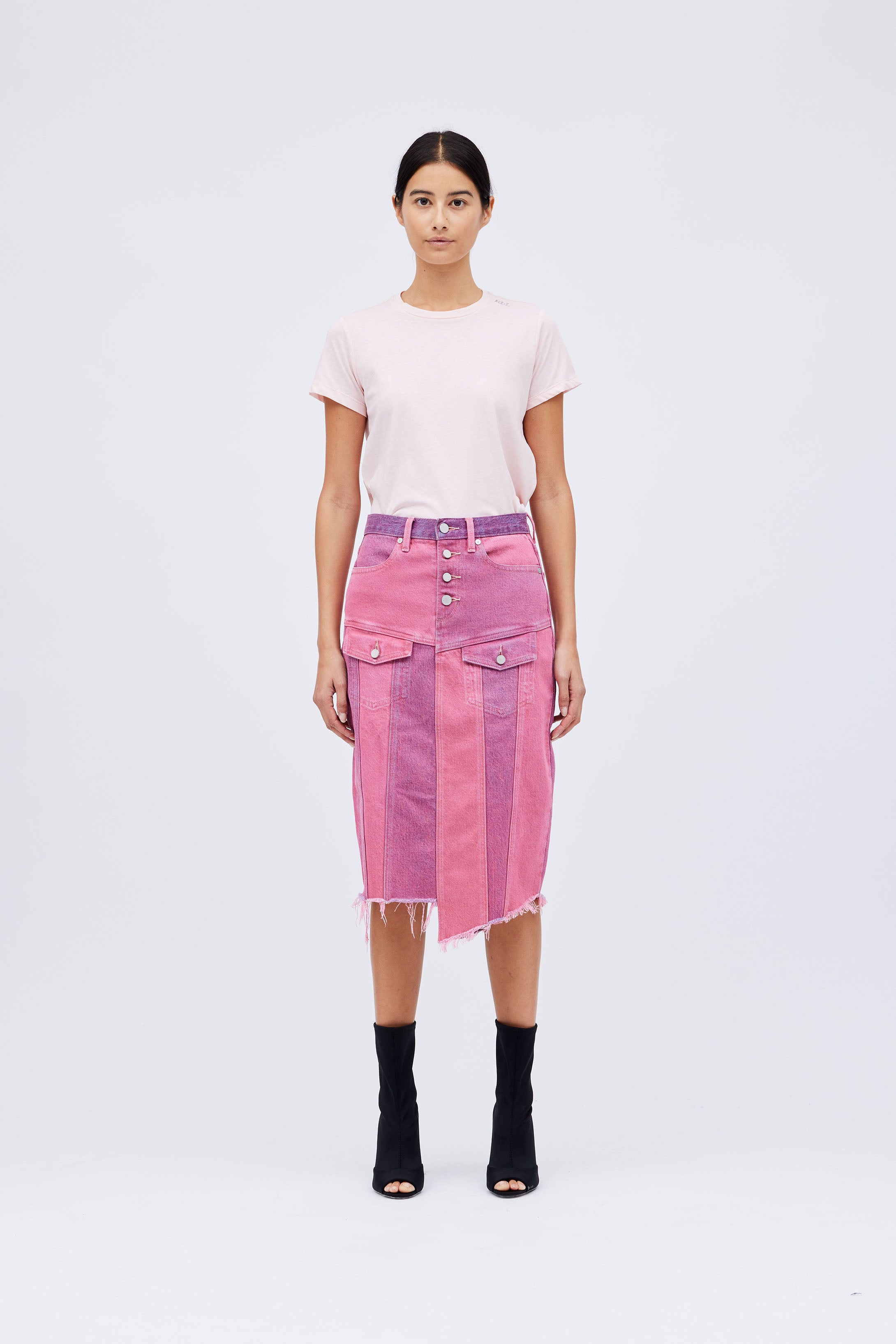 "Roxane" Mid-Rise Colorblock Denim Skirt