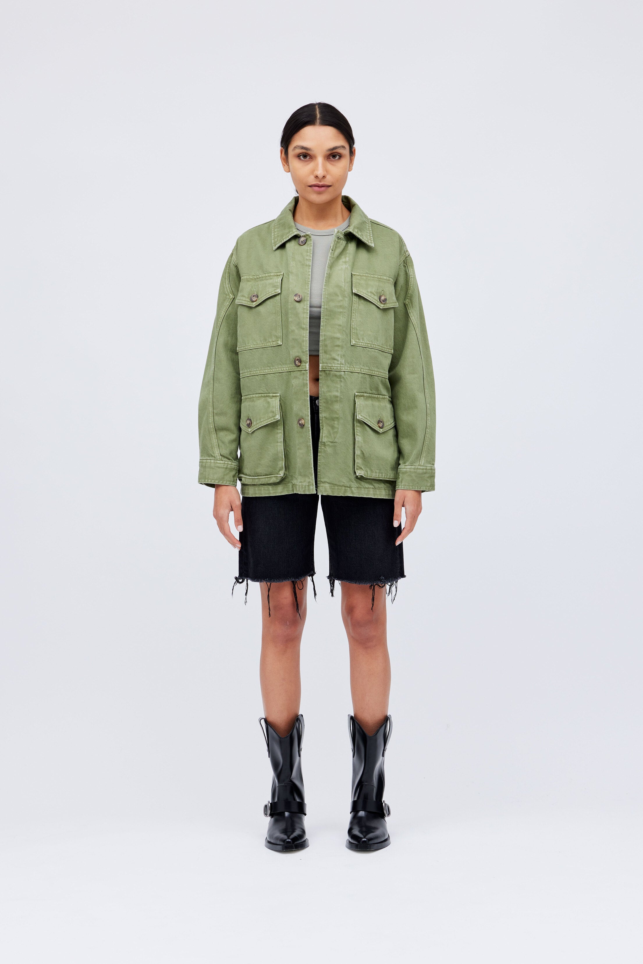 "Frances" Garment Dyed Denim Twill Utility Jacket