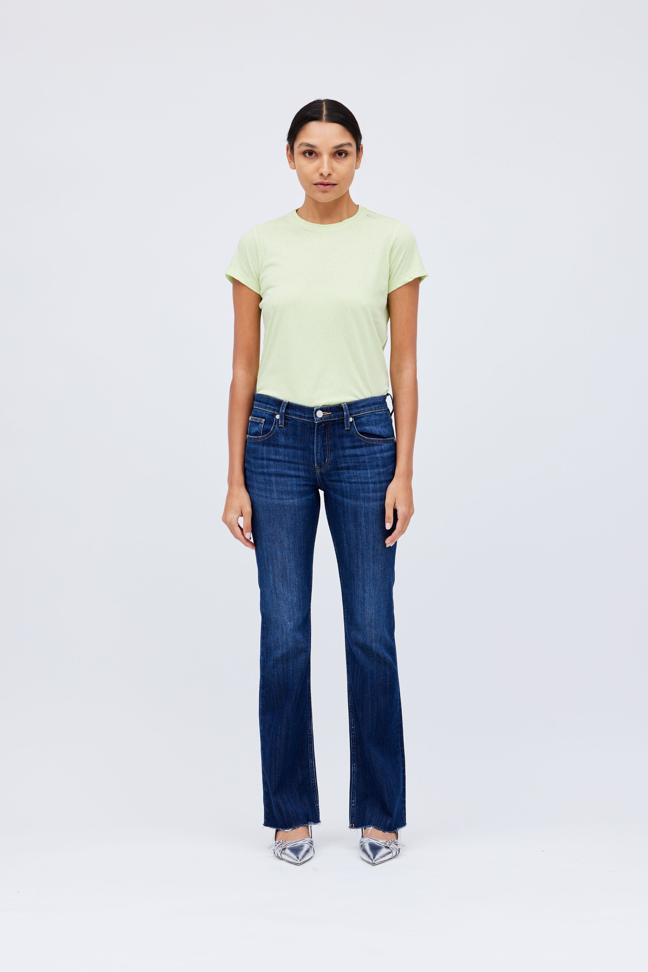 "The Seraphina" Low-Rise Flare Jeans in faded Dark-Wash denim.
