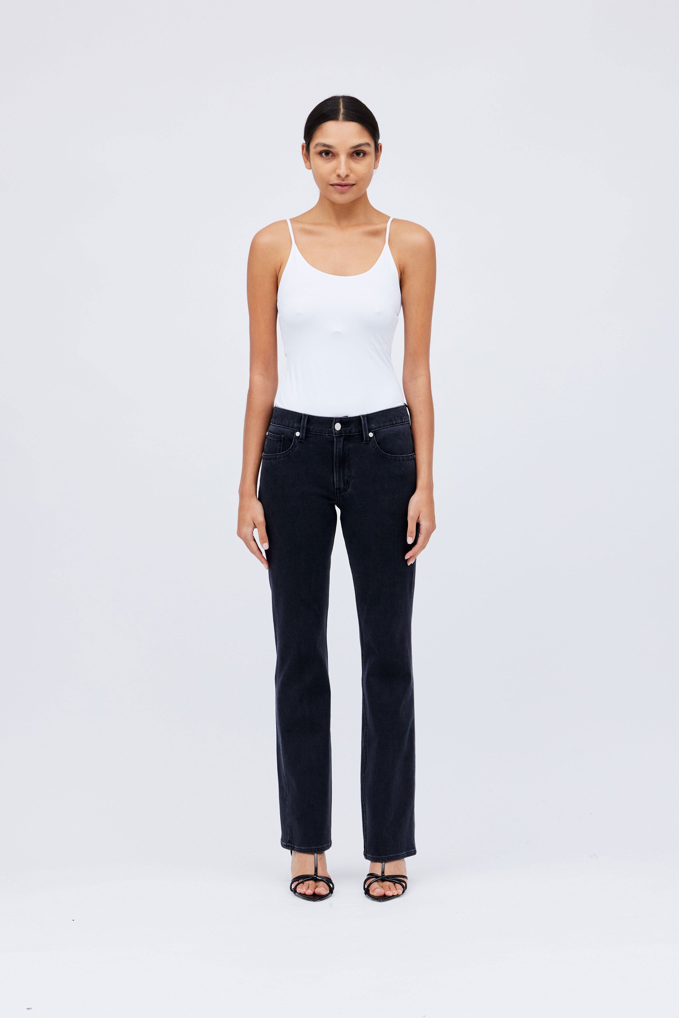 "The Straight Up" High-Rise straight-leg jeans in faded Black-wash , comfort stretch-denim