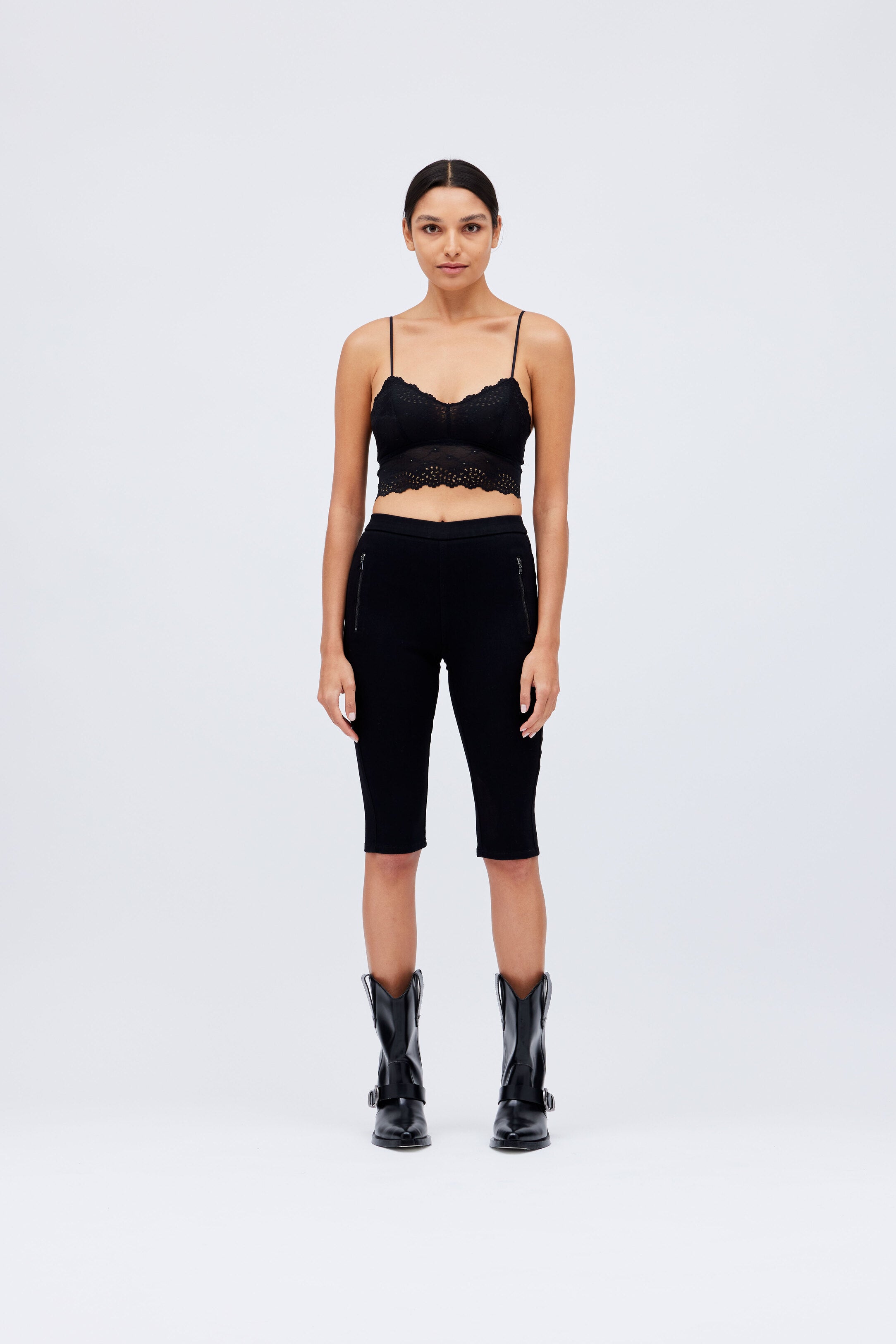 "The Levina" High Rise Pull On Knee Length Short in 4 Way Stretch Denim