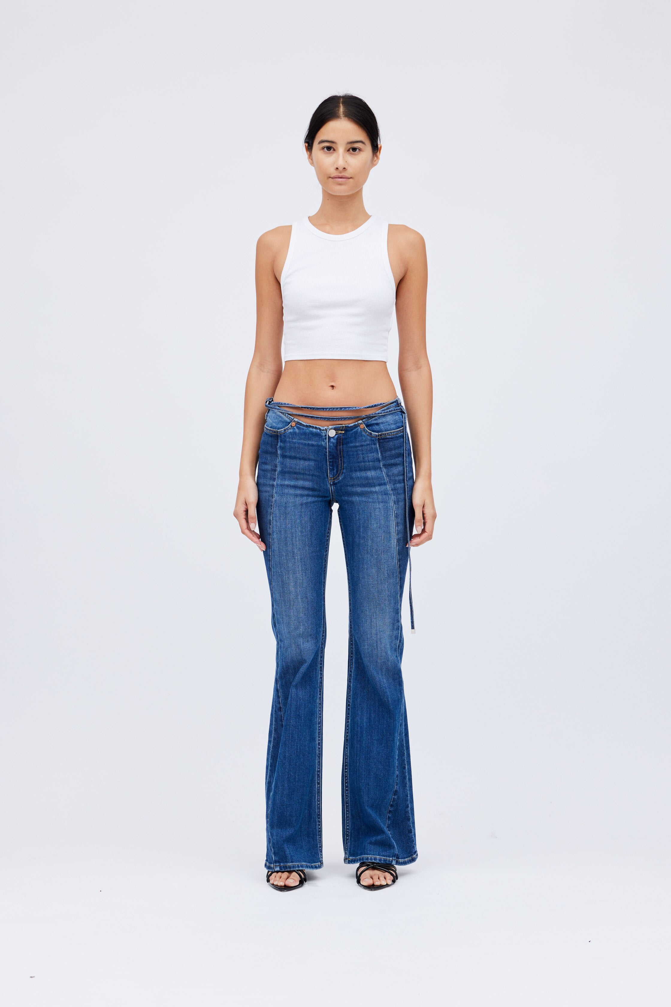 "The Stella" Two-Toned Low Rise Denim Flare With Waist Tie