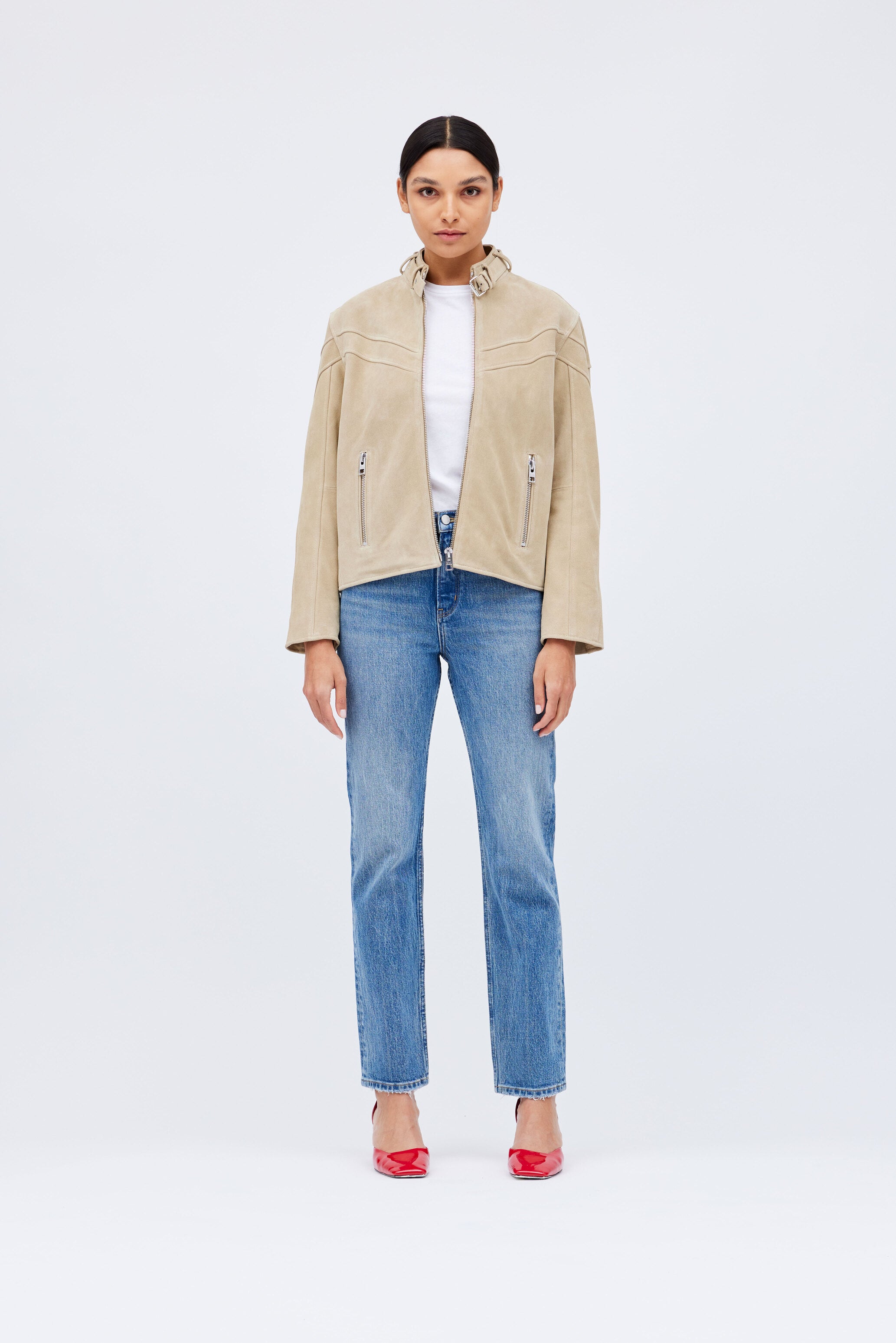"Carnaby" Suede Motorcycle Jacket in supple suede feathers Dropped Shoulder detail Crafted from midweight suede