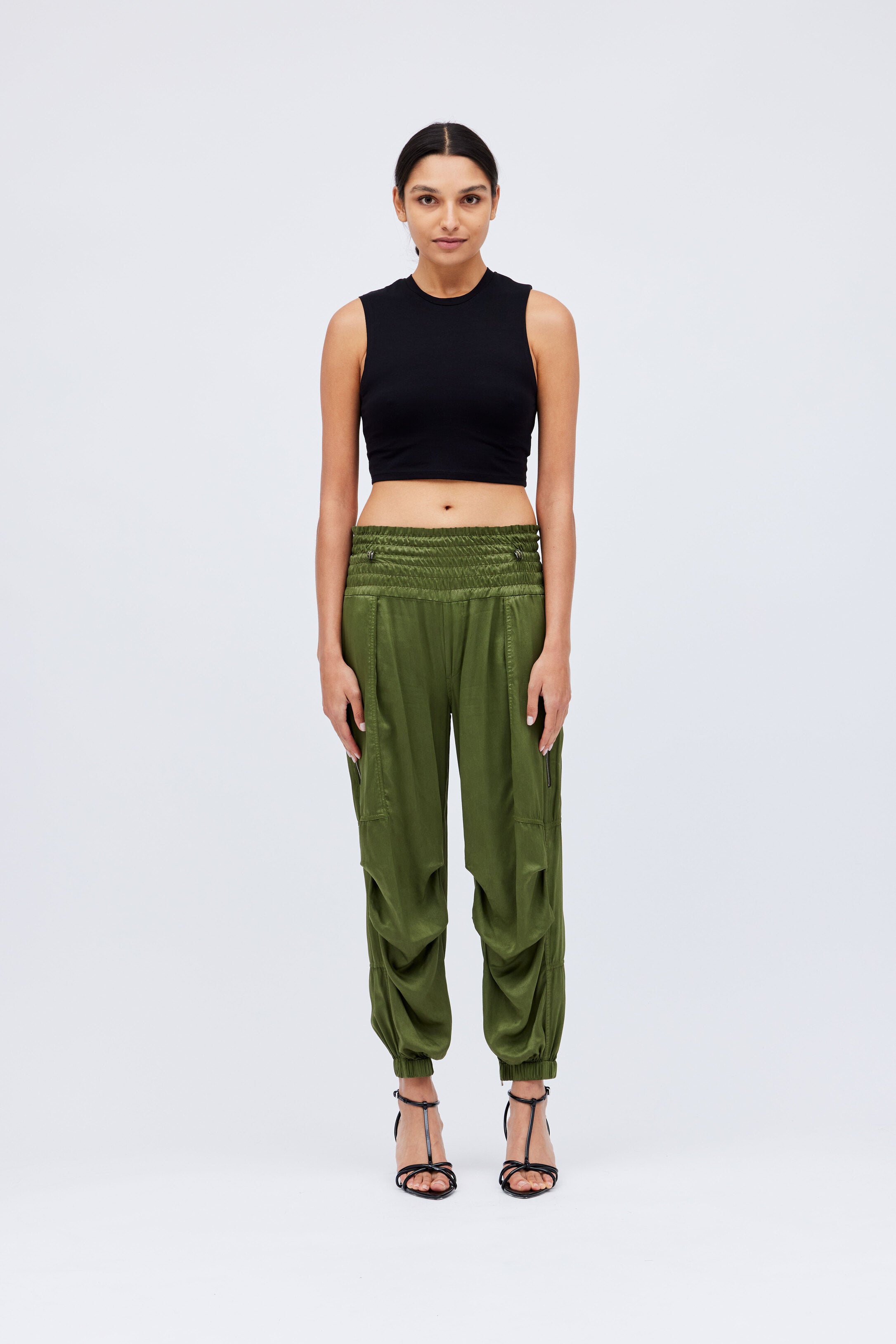 "Rene" Washed Silk Utility Pant With Smocked Waistband