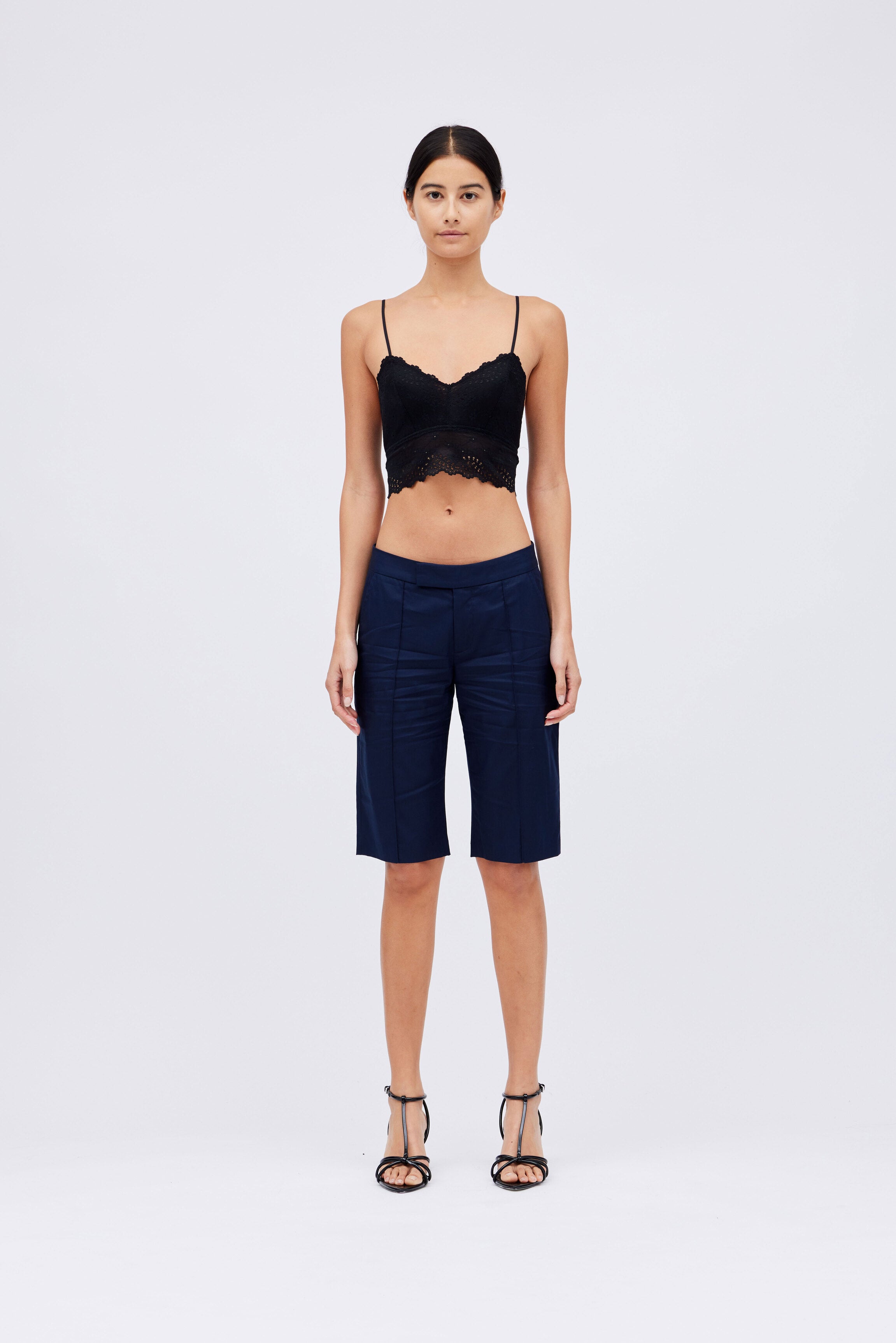 "Cara" Knee Length Slim Trouser Shorts with Pintuck in Modal-Cotton Blend Fabric