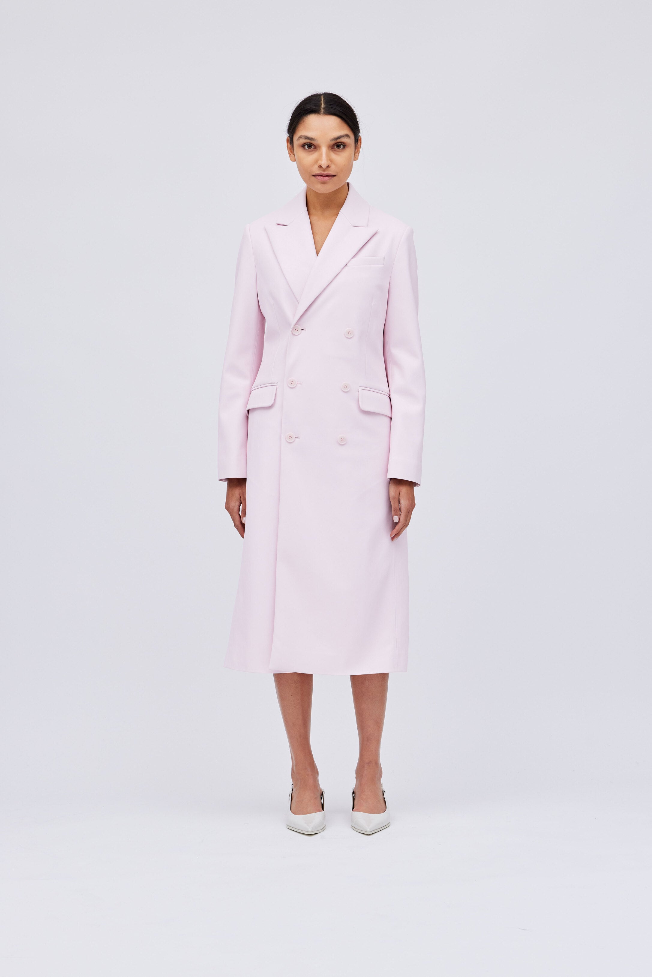 "Finley" Double Breasted Maxi Coat in Vegan Leather. It's defined by padded shoulders for added structure and...