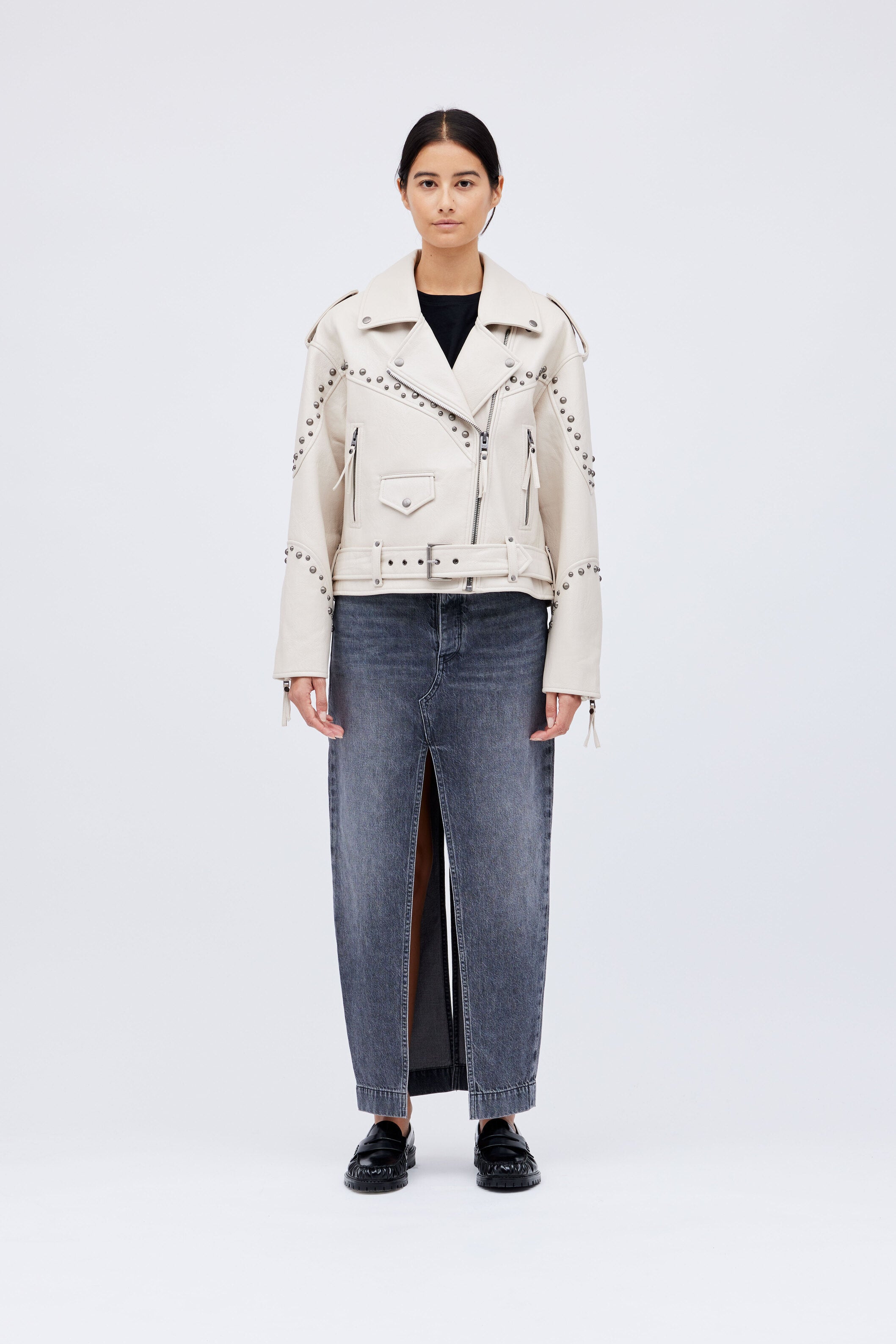 "Callie" Stud-Embellished Oversized Vegan Leather Biker Jacket
