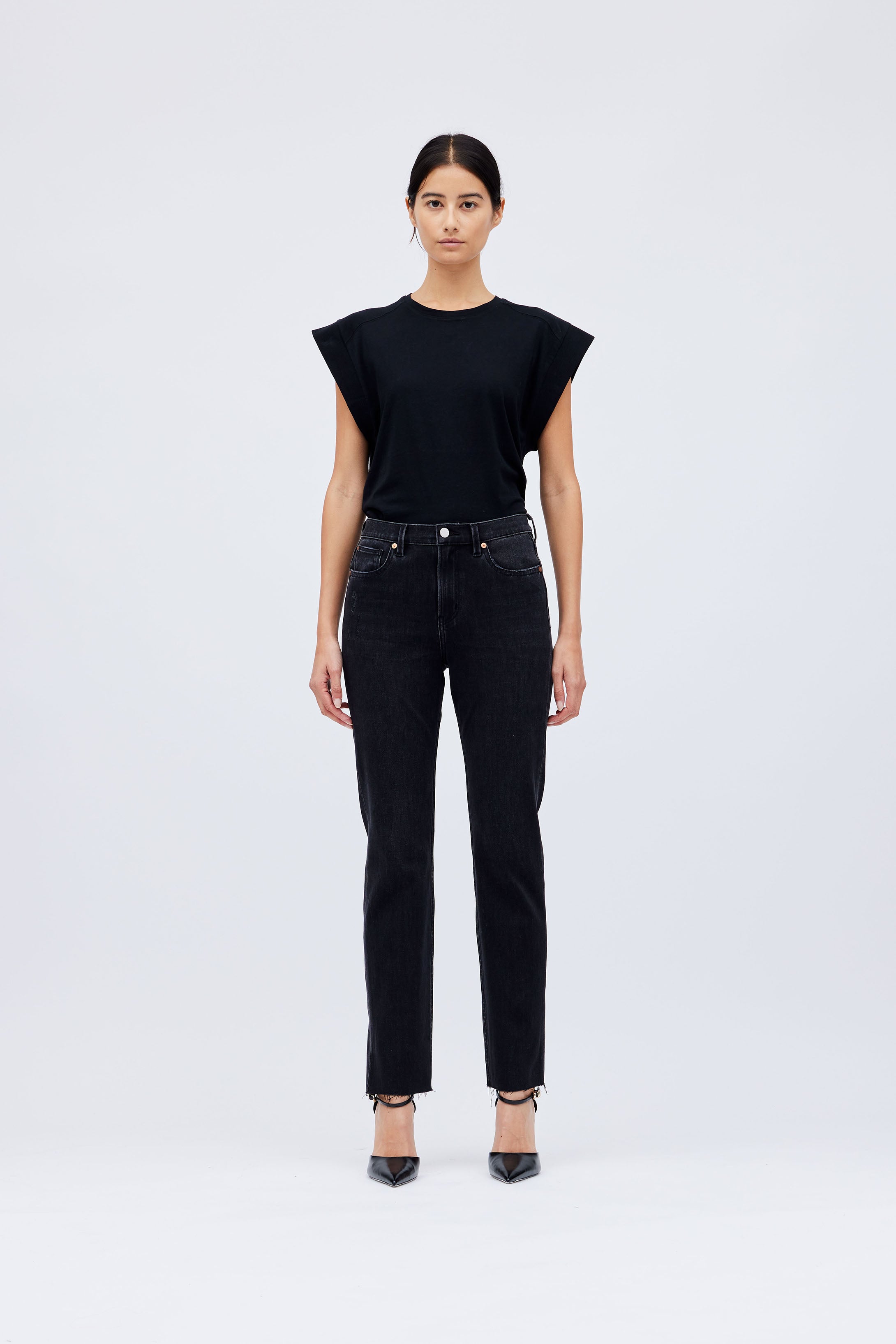 "The Maxine" Mid-Rise straight-leg jeans in Black-wash in 4-Way Stretch-denim  Approx. measurements : 11" rise ,30.5" inseam...