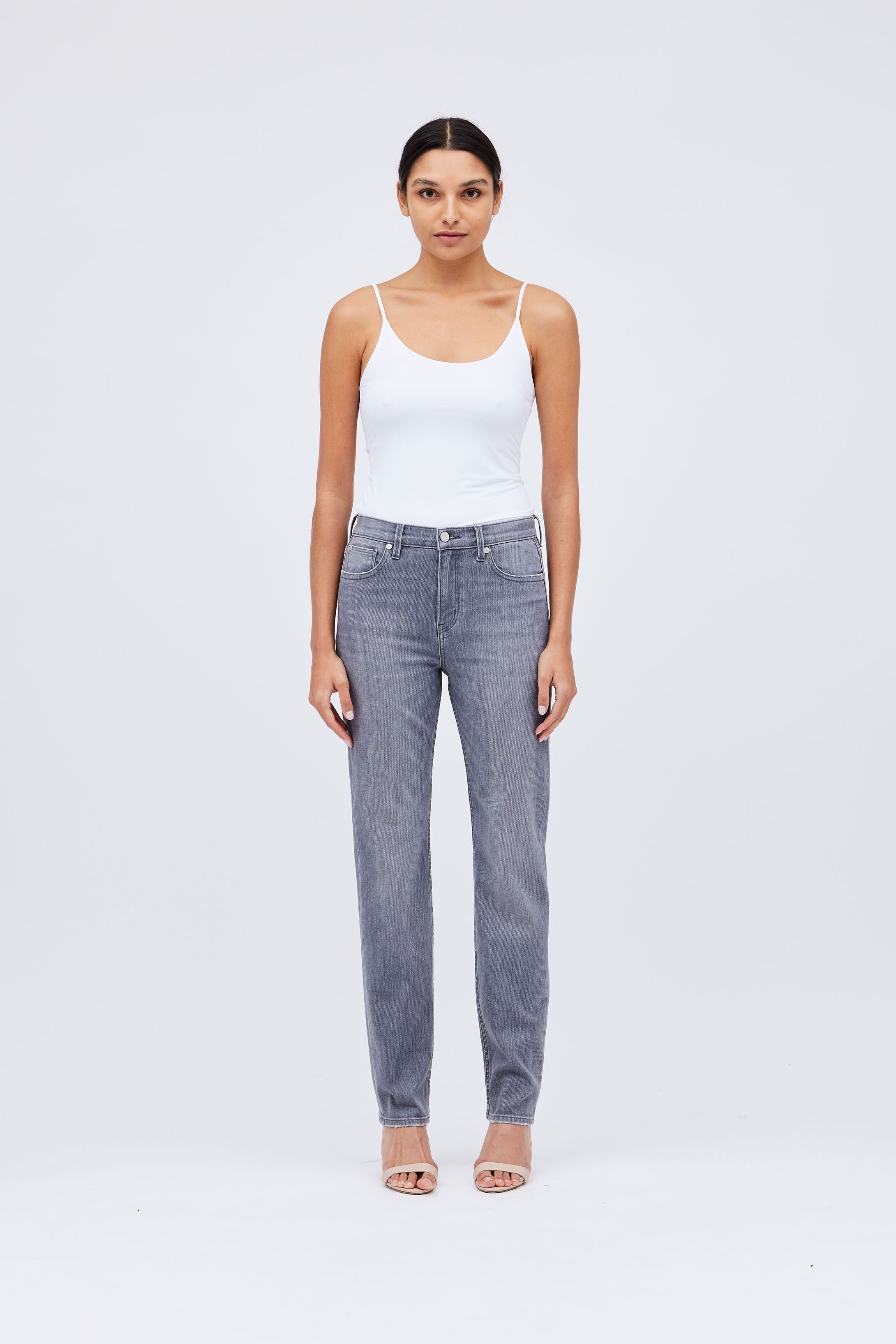 "The Maxine" Mid-Rise straight-leg jeans in Faded Grey-wash in 4-Way Stretch-denim  Approx. measurements : 11" rise ,30.5"...