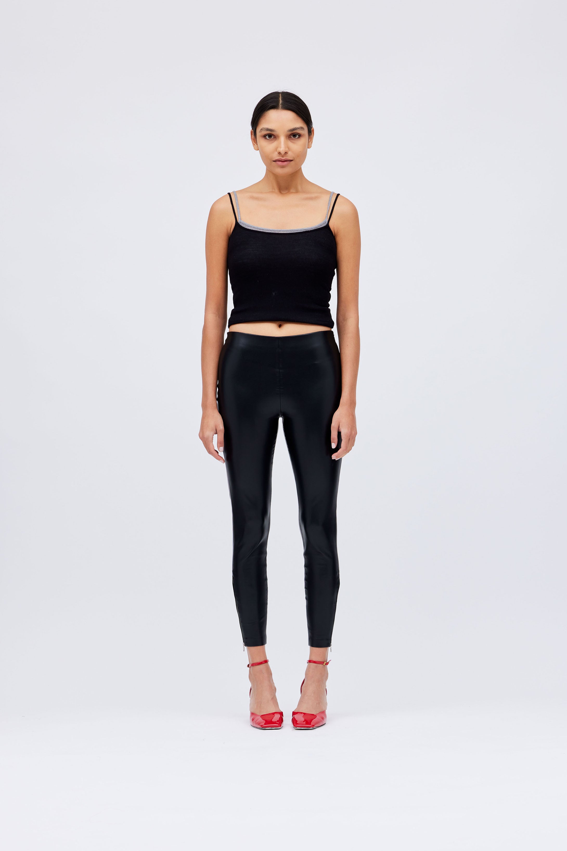 "The Newton" Mid Rise Vegan Leather Legging with Zipper Detail at Hem