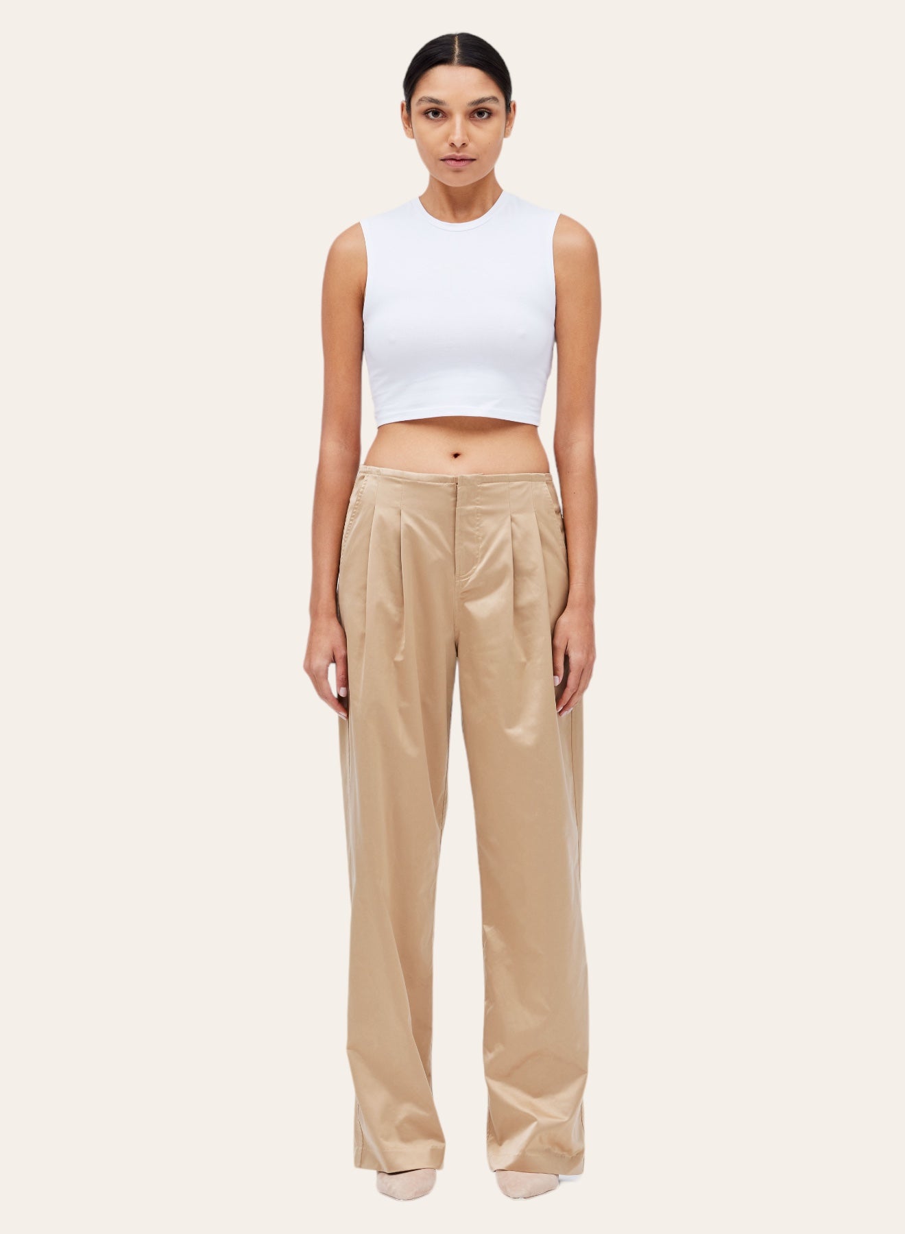 "The Tatum" Mid-Rise Wide Leg Pleated No Waistband Trouser Satin Fabric