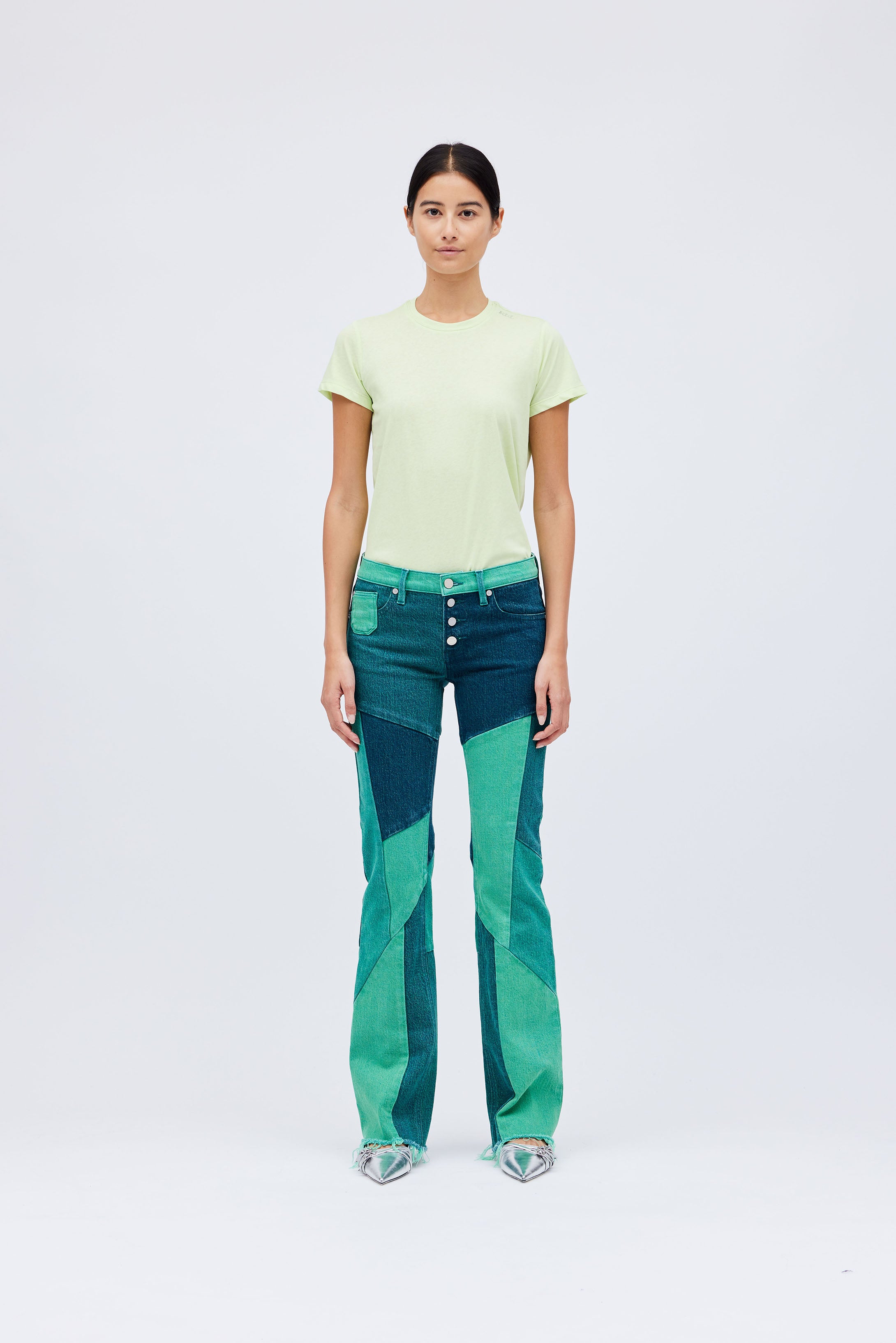 "The Wylie" Color Block 5 Pocket Flare Jeans Approx. 9" rise; 33" inseam, 18" leg opening (...